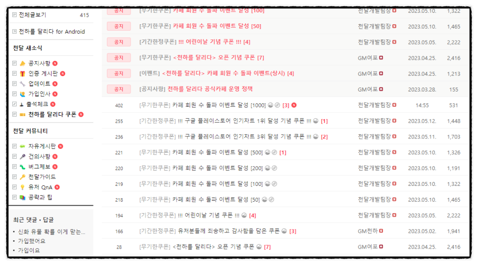 천하를 달리다 카페는 네이버 커뮤니티를 활용하고 있는데요.